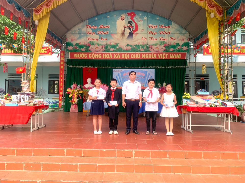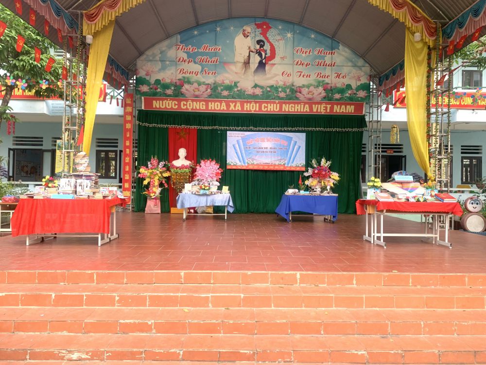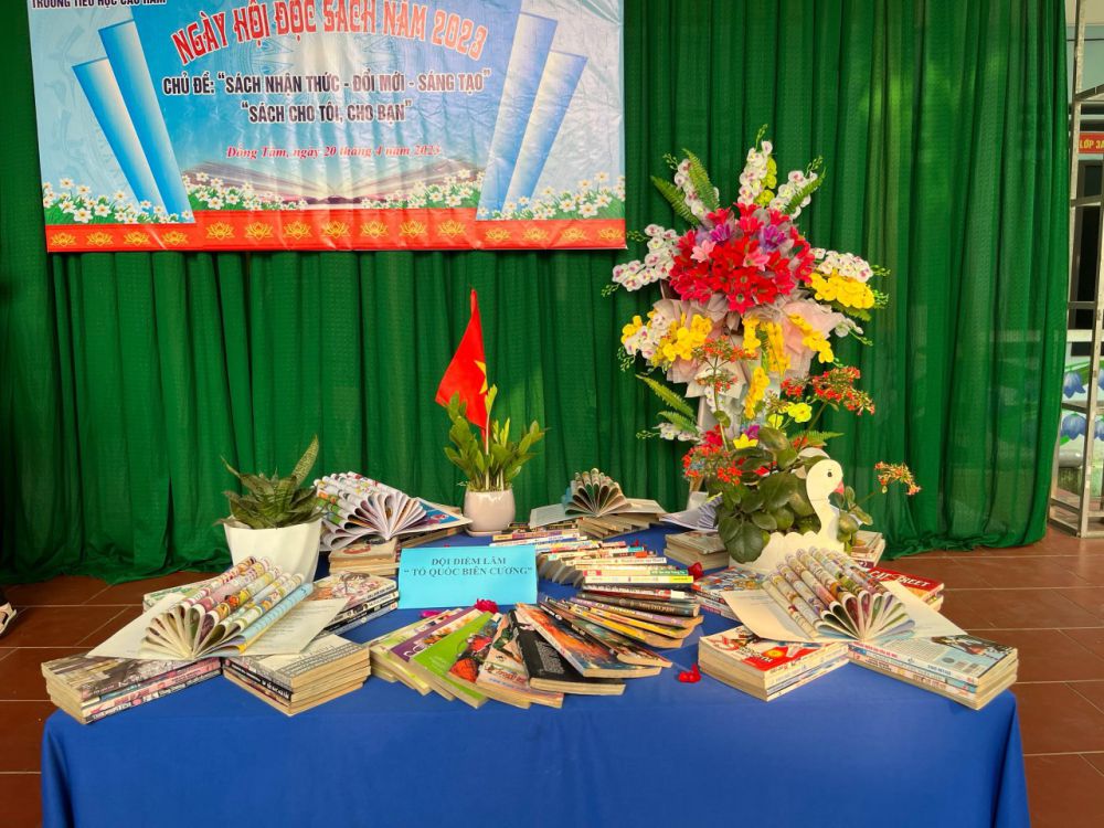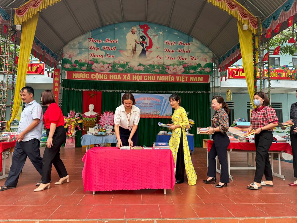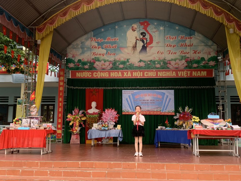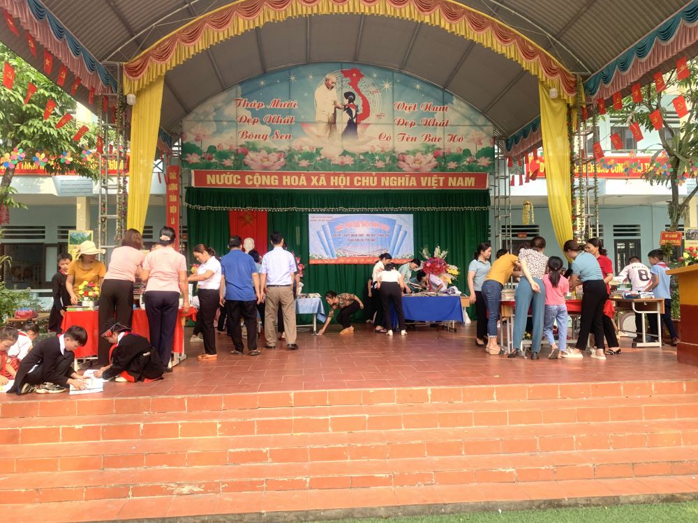 Với “Sách: Nhận thức - Đổi mới - Sáng tạo”; “Sách cho tôi, cho bạn” trong khuôn khổ ngày hội đọc sách, các em học sinh cùng tham gia hoạt động với các nôi dung, gồm: Thi xếp sách nghệ thuật, thi kể chuyện theo sách, ủng hộ sách cho thư viện nhà trường,… Ở mỗi nội dung đều được chuẩn bị kỹ lưỡng và hình thức trang trí, thiết kế đẹp mắt và nội dung phong phú, hấp dẫn. Đặc biệt khu xếp sách nghệ thuật đã thể hiện được tình yêu sách với việc sắp xếp một cách ngăn nắp, đẹp mắt, trang trọng với nhiều đầu sách quý, trong đó đặc biệt là những cuốn truyện về Bác Hồ kính yêu.