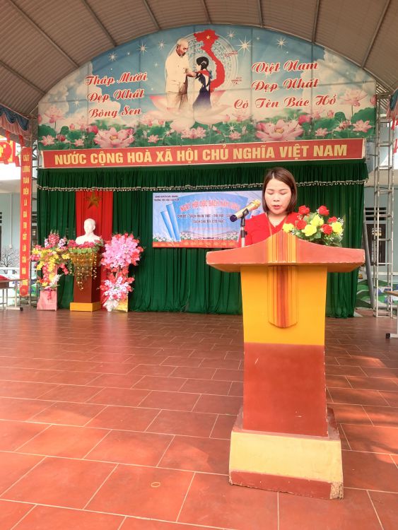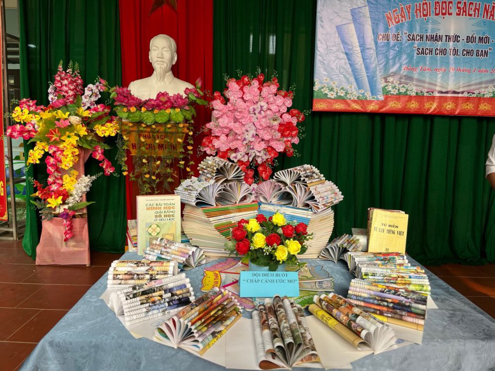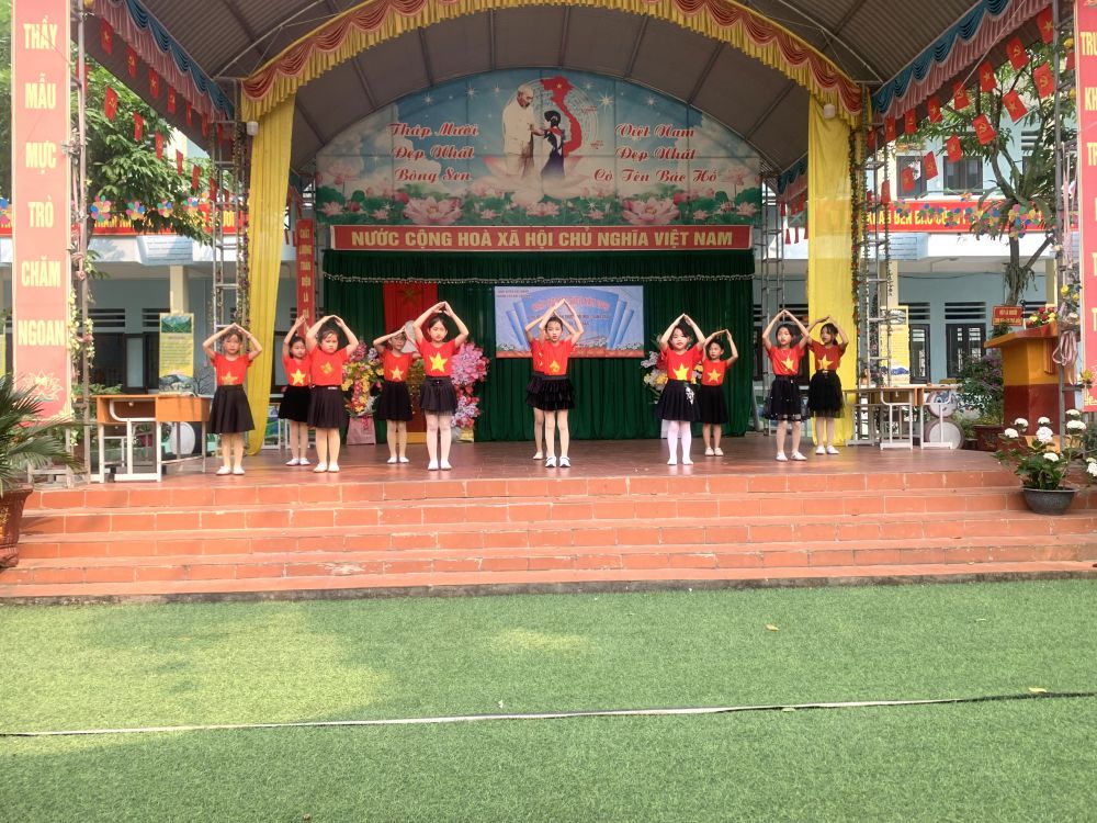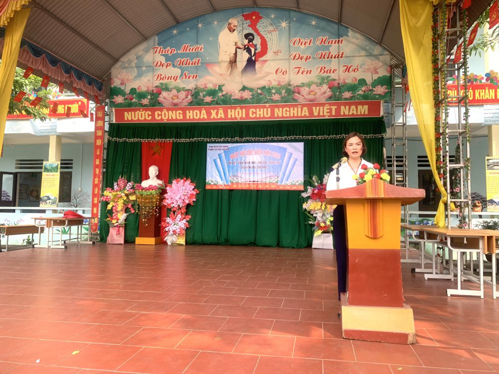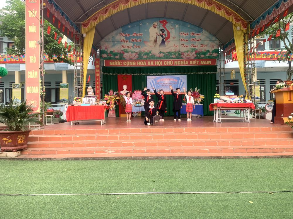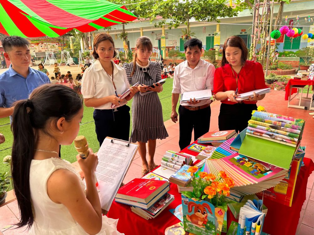 Với “Sách: Nhận thức - Đổi mới - Sáng tạo”; “Sách cho tôi, cho bạn” trong khuôn khổ ngày hội đọc sách, các em học sinh cùng tham gia hoạt động với các nôi dung, gồm: Thi xếp sách nghệ thuật, thi kể chuyện theo sách, ủng hộ sách cho thư viện nhà trường,… Ở mỗi nội dung đều được chuẩn bị kỹ lưỡng và hình thức trang trí, thiết kế đẹp mắt và nội dung phong phú, hấp dẫn. Đặc biệt khu xếp sách nghệ thuật đã thể hiện được tình yêu sách với việc sắp xếp một cách ngăn nắp, đẹp mắt, trang trọng với nhiều đầu sách quý, trong đó đặc biệt là những cuốn truyện về Bác Hồ kính yêu.